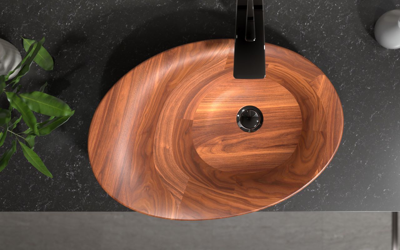 Oozing in natural flair, the American Walnut Nanomorph sink brings out the sink's stunning wild side. A stepping stone in Aquatica’s wooden sink sector, the uniqueness in both the Nanomorph’s basin and its blend with solid wood make this vessel sink the ideal candidate for showcasing the sink of tomorrow.